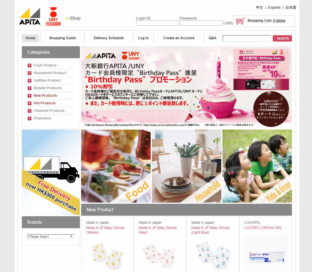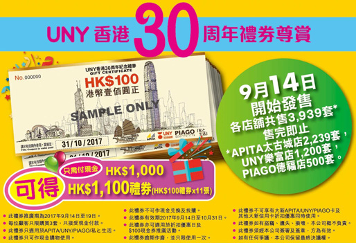 至今Unicorn Stores (HK) Ltd.共有2間百貨公司及2間超市,分別為APITA太古城店,UNY樂富店、UNY元朗店及UNY將軍澳店,繼續以成為本港最被信賴及被喜愛的零售百貨和超市為目標不斷成長。